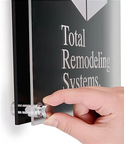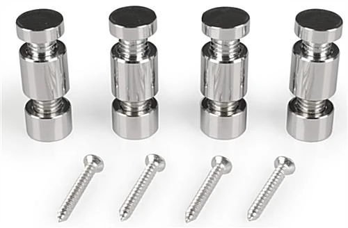 A sign spacer is a great way to make your signage creative and professional. The double panel standoff can hold two pieces of signage at once, whether it is metal, plastic, glass or something else. The colored aluminum spacer will give your signage a three dimensional feel. The first piece of acrylic will lay 3/8″ from the wall and the next piece of acrylic installs 1″ from the wall. The spacer is great for having a background design or custom shaped acrylic for the back and a company name or information on the front acrylic. The through standoff has a chrome finish and is simple to install.