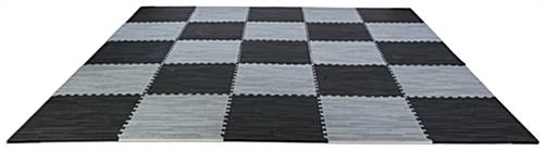 Black & Gray Wood Grain Floor Mats Create 10’ x 10’ Space