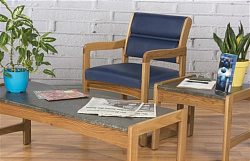 Blue Reception Room Chair with Medium Oak Finish