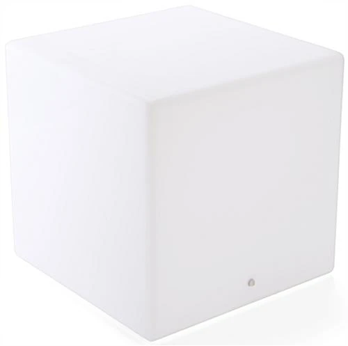 Spice up your bar, lounge, or event with a modern style using this LED cube table. Each piece of furniture has a rechargeable lithium ion battery that can last between 10 and 12 hours on one charge. The LED table comes with a remote control that can change colors, flash, and dim at the touch of a button. Plastic construction paired with rubber plugs in each charging port make each furniture piece water resistant for outdoor use while the frosted white finish maintains a touch of modern style. LED tables such as this can make your event booth pop out from the rest with eye catching light illumination. The 23.5” surface makes this water resistant fixture perfect for customers to share a drink over at your restaurant bar.