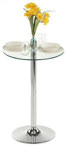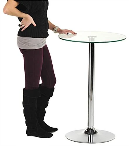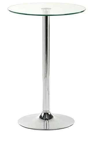 The possibilities are endless with this glass high top table that is at a fixed height. Using this tabletop to refurbish a drab room really makes a statement! The design is great for small groups to socialize around or to mix and match with chairs. Also, this modern glass high top table can complement any décor as tempered panels could match with anything. The chrome weighted base gives this pedestal a special flare and a sturdy structure that stands out amongst the rest. This round glass high top table is quality made dining furniture! Similar dinettes can often be found at fine dining venues and cost a fortune. This glass high top table that is modern furniture is offered at a great price for the same style! Shop for round pedestal tabletops now!