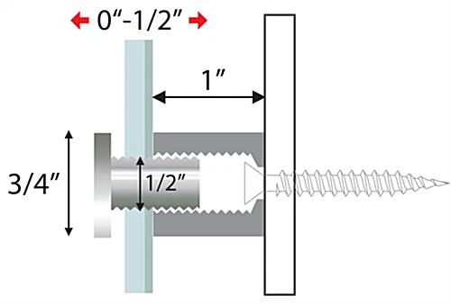 Standoffs, also called wall or panel fasteners, offer the installer a simple to use panel mounting system. These standoffs display sign panels off the wall for a striking effect. The standoffs need 1/2″ holes drilled in your display in order to use them. Our decorative wall fasteners can support wood, plastic or metal signage up to 1/2″ thick. These wall mount standoffs are made from quality materials and finishes designed to give you professional results every time.