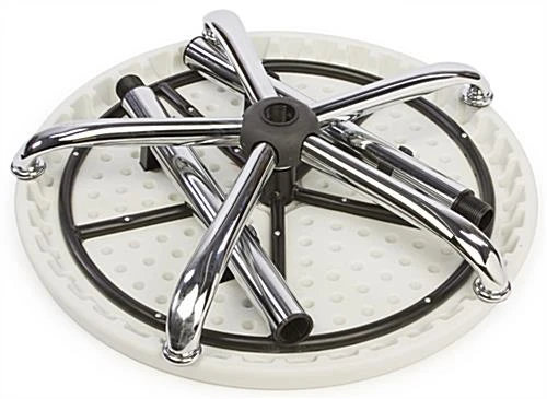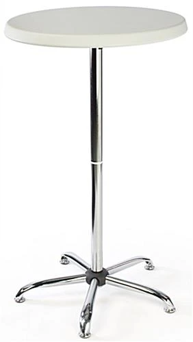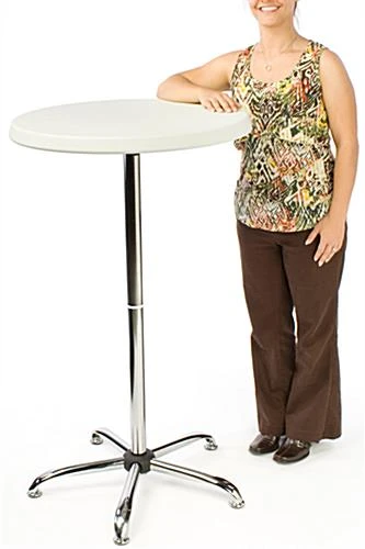 These 27″ round displays, tall cocktail tables that are built to last are crafted from durable steel and high-density polyethylene plastic. This event furniture looks great when covered with stretch or flowing tablecloths, designed to match the theme and color scheme of a party or coffee hour. These tall cocktail tables ship unassembled for reduced shipping costs and can easily break down for storage when not being used. To assemble the round furniture, users simply need to screw the four main parts (fanned-leg base, 2-piece stand & light grey speckled tabletop) together. One person can easily assemble these tall cocktail tables with little effort. Some basic tools may be required to complete the assembly process. These tall cocktail tables will add contemporary flair to the next big affair!