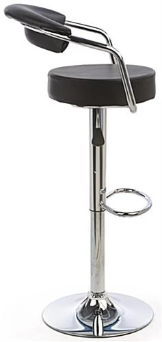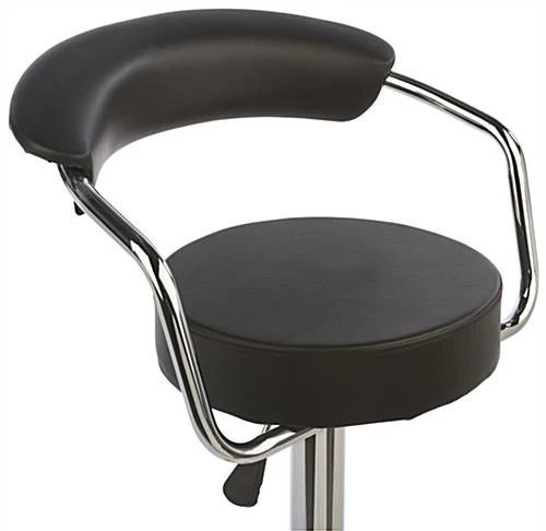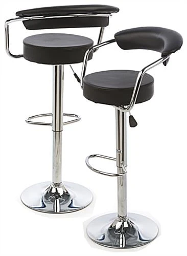 This bar stool with gas lift features a contemporary design that mixes form and function. Chrome accents give the chair a modern appearance, while a cushioned seat with small backrest make the furniture comfortable and practical for use in trade shows or restaurants. Each adjustable height bar stool features a pneumatic construction that allows adjustments for use with tables or high tops. 360° rotation is great for social environments, such as industry conventions where socialization is a must. For convenience, this bar stool comes with 2 pieces of furniture per order. Each modern adjustable height chair is sure to impress at your next event!