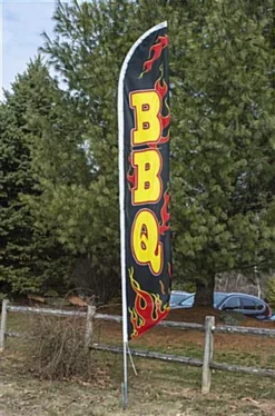 14’ Feather Flag & Ground Spike W/ Pre-Printed BBQ Message – Black & Yellow