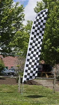 14’ Feather Flag & Ground Spike With Pre-Printed Checkered Pattern – Black & White