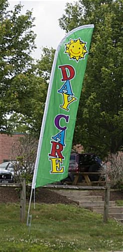 14’ Feather Flag & Ground Spike With Pre-Printed DAYCARE Message – Green