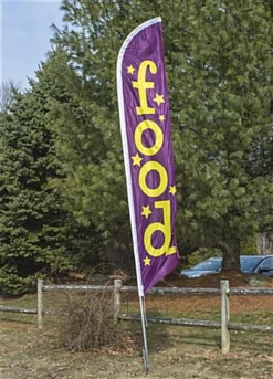 14’ Feather Flag & Ground Spike With Pre-printed FOOD Message – Purple & Yellow
