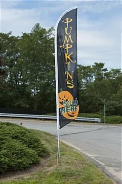 14′ Feather Flag & Ground Spike W/ Pre-printed PUMPKINS Message – Black
