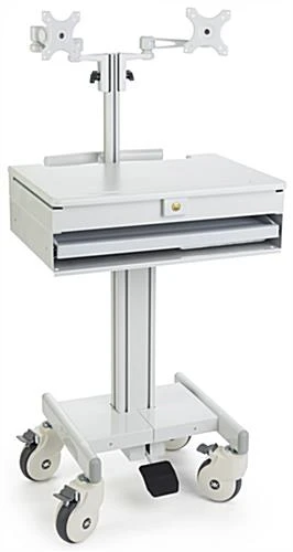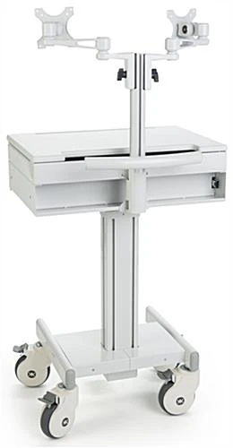 Dual Monitor Medical Cart with Lockable Wheels