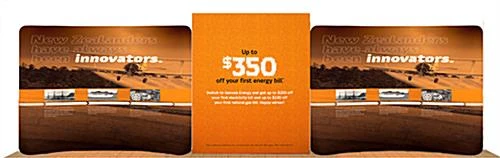 Pick-up extra fabric prints to switch up your trade show backdrop with these 3-panel replacement graphics for . The stretch fabric easily slides over the frames to create impressive displays and pulls tight to remove wrinkles for a clean, crisp look. To ensure that the full-color graphics remain in place, snap-buttons and hook-and-loops straps are stitched in discrete locations to keep the material tight without obstructing important text and images. As well, brilliant dye-sublimated ink ensures that the custom artwork retains its vibrant colors through multiple uses.