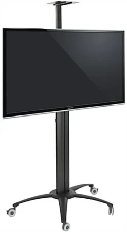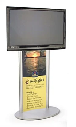 TV Stand With Poster Holder, Fits Monitors 42 To 60-Inch, Oval Base – Silver