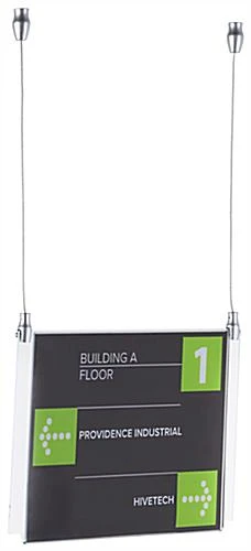 (4) 8.5 X 11 Ceiling Sign Holders With 16-foot Steel Cable System – Clear
