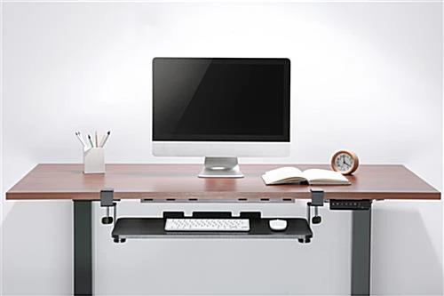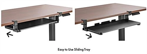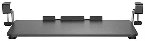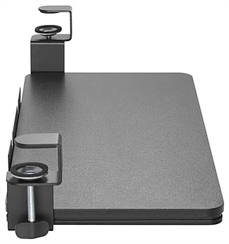 This clamp-on sliding keyboard mount is universal to fit most tabletops, excellent for keeping your computer mouse, pens, and other work supplies nearby while providing an ergonomic solution to keep your wrists and arms at the proper height. This modern mounted platform offers a safety ledge stopper to prevent devices from slipping off. Our ergonomic universal clamp-on sliding keyboard mount features a retractable track-mounted design to easily tuck away the tray when not in use, providing added space during the workday. This easy-to-use platform ships partially fully assembled, allowing you to install it within minutes. The retractable under desk tray will help maintain a more comfortable working posture by positioning your tray lower and closer to your body. The durable powder-coated finish will ensure years of daily use. This ergonomic under desk clamp-on sliding keyboard mount is the perfect addition to your home office or workspace, making your day-to-day tasks more manageable.