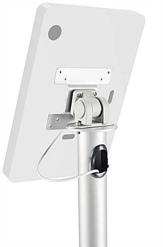 These silver tablet floor stands are the perfect accessory for any retail environment. Constructed of steel and featuring a weighted base, the mounts are designed to hold a variety of electronics. The tilting tablet floor stands can support both 75×75 or 100×100 VESA configurations, so users can secure a variety of tablets, iPad enclosures, monitors, or TVs to the fixture. The display is 46” high and can be used to showcase interactive content to visitors, including wayfinding signage, advertisements, information about local attractions, check-in screens, and more! Choose this tablet floor stand to add a touch of style to your commercial location.