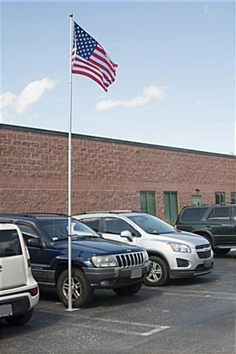 This portable flag pole has a telescoping feature allowing it to extend up to 20’ tall. Included is an iron tire mount allowing you to represent your nation’s or sports team’s banner at your next tailgate or camping adventure. The aluminum flag pole comes with a 3’ x 5’ American flag and a gold ball finial post top. If you do not want to use the tire mount, the mast features a PVC pipe for alternate ground insert. The flag pole features double hooks for flying two flags atop the aluminum mast. Outfit your next tailgate, campsite or stadium event with this unit and its easy set-up to best represent the pennant of your choice!