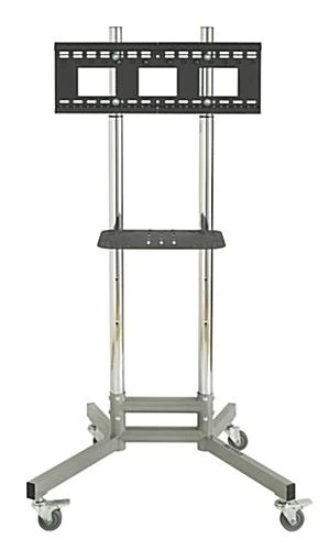This multimedia presentation cart that is constructed of steel is durable to prevent chipping and scratching. This LCD stand is 71″ tall for high visibility even in a large room. This mobile office furniture, multimedia presentation cart that is equipped with 3″ casters is easy to maneuver around an establishment. This contemporary display has sleek lines with a chrome and silver color scheme. This multimedia presentation cart that has an adjustable shelf is a cost effective classroom workstation. The 3 position shelf is an ideal surface to hold a DVD player, cable box, or other electronic device. Each multimedia presentation cart is constructed of steel with chrome uprights for a lasting LCD rack. The VESA mounting bracket is compatible with most TV models and makes within the size constraints. Featuring a height adjustable TV mount, this versatile multimedia presentation cart can be adjusted to suit different rooms in an establishment. This mobile classroom or office furniture with a universal mounting bracket is cost efficient and ideal for the budget conscious. Each multimedia presentation cart ships fast when in stock.