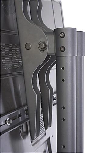 This digital window display that is for use in a store-front is an innovative solution for retailers who do not want to mount a tv from the ceiling! This flat screen mounting post includes a cutting edge design to ensure that the flat screen is right up against the storefront glass. This flat screen digital window display stand has 10 set height adjustments to accommodate nearly any sized storefront. This cart has two wheels so users can move by tilting and rolling as needed. This digital window display stand is designed with a back platform for placing decorative or merchandising displays that customers can see from the inside of an establishment. This digital window display stand is VESA compatible and includes a mounting hardware kit that will accommodate most flat screens.