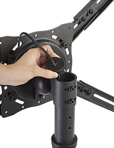 This LCD TV stand with 4 acrylic literature pockets is commercial-rated for professional uses. Each fixture features a height-adjustable post for accommodating screens ranging from 32″ to 47″. Our rugged steel TV stand is an excellent choice for displaying advertising or company information. Pairing your monitor with the literature rack allows you to stream targeted video content while offering take-home reading materials. The TV stand comes with four heavy-duty wheels that are also lockable. Roll the display where you need it with ease!