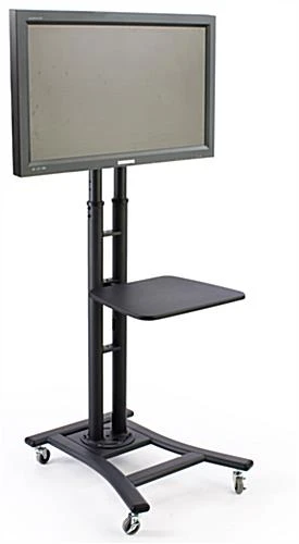 This monitor and digital equipment stand has (4) locking wheels that make each presentation display highly mobile, and once in a desired location you can lock the wheels to increase stability. The stand has a tilting mount as well that allows you to angle your television down up to 15° for better view. This flat panel stand’s bracket is sized to hold a 37″ to 65″ television that weighs up to 110 lbs. The compatible mount supports 200mm x 200mm to 800mm x 400mm. We ship this black finish aluminum stand unassembled and it’s easily put together in a few minutes using the provided tools and instructions. This durable monitor or presentation stand is made of metal to last for years to come, and the sleek, wheeled design easily fits in with any surrounding!