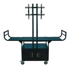 TV Cart With Mounts For 2 Monitors Up To 70″, Storage Cabinet, Camera Shelf – Black
