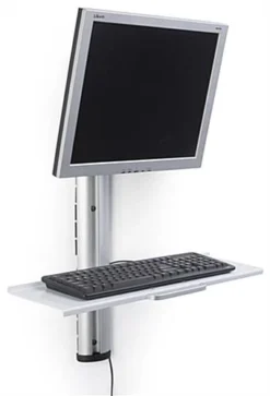 Workstation For Wall, Fits 15”–27” Monitors, Keyboard & Mouse Tray – Silver
