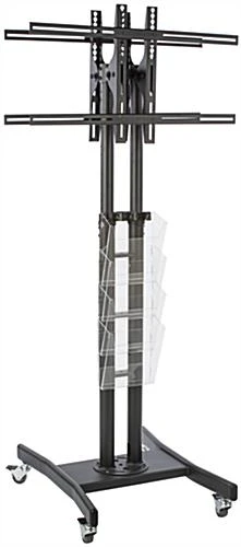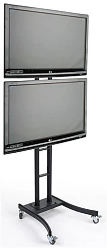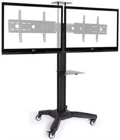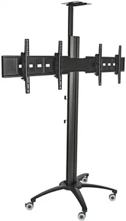 Dual TV Stand W/ Power Outlets, (2) 30 – 60″ Screens, Wheels & Camera Mount – Black