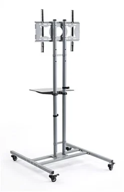 TV Cart With Height-adjustable Shelf, Fits Monitors 32 To 55″ – Silver