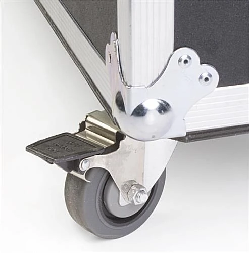 This flat screen tv case for trade shows has two locking caster wheels. The locking mechanisms make it easy to load and unload LCD monitors. This portable 80” monitor container, flat screen tv case that locks has extra space for accessories such as cable cords so that all electronics can be organized into one container for effective use. Every flat screen tv case that protects 73” LCD screens feature secure chrome plated iron latches that keep the cover firmly attached to the case. These road crates are great for transporting valuable LCD electronics. The flat screen tv case, such as a road caddy, is great for tradeshows and exhibits to display important information. Keeping expensive plasma screens damage free during transport, these shipping crates are a great investment!