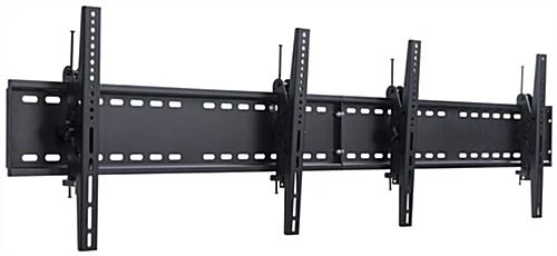 Create a menu board in your shop, restaurant, or information center with this 2-TV wall bracket. Built to accommodate dual LCD or other flat screen monitors ranging from 30” to 60” in size, this mount is ideal for establishments big and small. The tilting wall brackets can adjust between 10° and 15° to allow placement higher up for greater visibility. Hardware is included to hang the unit in your shop as well as to mount the VESA compatible LED, LCD, or other flat screen device. Fixtures such as this can be used to showcase customized digital signage in hotels, bars, and universities. Bring versatility to your establishment with this bracket that can accommodate dual large panel televisions.