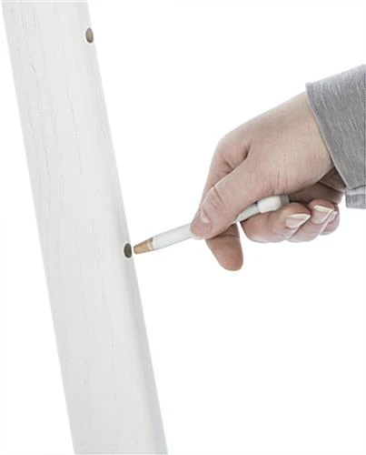 Constructed from solid oak, this white wooden easel is a durable fixture ideal for use in artist studios or galleries! Featuring a bi-folding design for easy assembly, the art board holder sets up with minimal effort and folds to 2”d for quick storage. Each 67.25”h easel includes 2 pegs which can be adjusted in 8 positions at 5” increments allowing your framed print to be displayed in the most appropriate orientation. Display fine art, poster boards, advertisements and more with a touch of elegance using the high quality stand. The easel can be used in a variety of locations such as a hotel lobby, office common area, as well as in the home to show off a prized piece of artwork! Each display stands 67.25” tall to accommodate large size prints and canvases for an eye-catching presentation that is sure to make an impact on passersby!