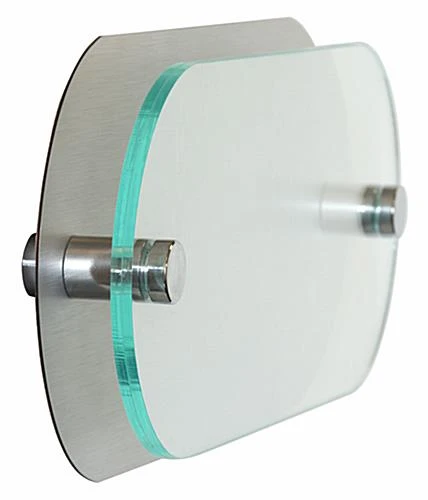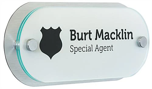 Manufactured from acrylic and formica, this door sign with brushed aluminum backer provides a professional looking directory. Perfect for name plates, these holders can also be wall mounted. Unlike other wayfinding systems, you can create custom graphics and inserts for your oval door sign with the included film sheets. Design and print name plates from your office printer and place between the two acrylic panels. This holder is mounted to the wall with two metal standoffs that screw off easily allowing your custom graphics to be swapped out quickly and easily. The standoff grips are subtle enough to not obstruct the message on your door sign.