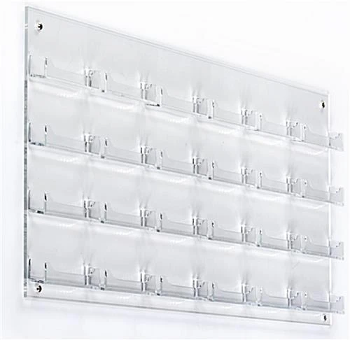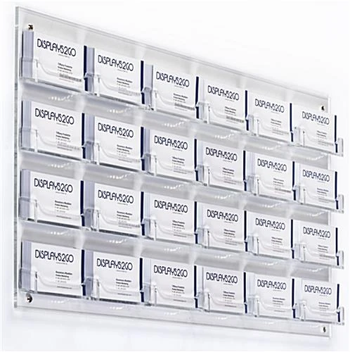 This clear 24-pocket wall business card holder is a great marketing tool for small companies and large institutions alike! Hang the acrylic display in offices, stores, schools, or hospitals. Each pocket mount business card holder simply screws into the wall with included mounting hardware. The durable acrylic construction is sure to coordinate with any décor. Stock the business card holder with your own contact information or allow other vendors to fill it. Items like this mounting unit would be a hit at any trade show or conference.