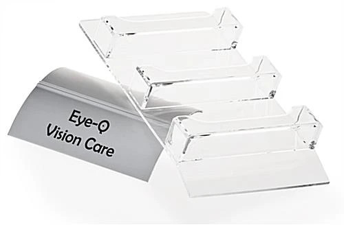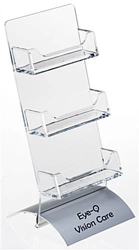3-Pocket Card Display with Printed Logo on Silver Aluminum Base
