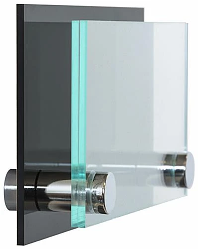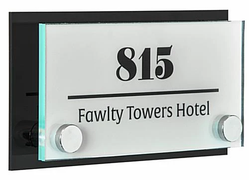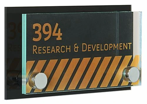 This architectural sign with backer is great for office buildings and businesses in need of versatile and professional-looking wayfinding systems. This 6” x 3” standoff holder is comprised of a double acrylic panel mounted to a black, rear plate, creating a layered appearance that easily catches the eye. Use this raised sign for a number plaque, name plate, or any other directory component. Print your own graphics on the six included film sheets, three clear and three frosted, to create custom wayfinding systems. Update your number plaque by unscrewing the chrome standoff caps to detach the acrylic panel while the black plate remains mounted. Along with the custom printable sheets, this sign also includes hardware and anchors for easy installation.