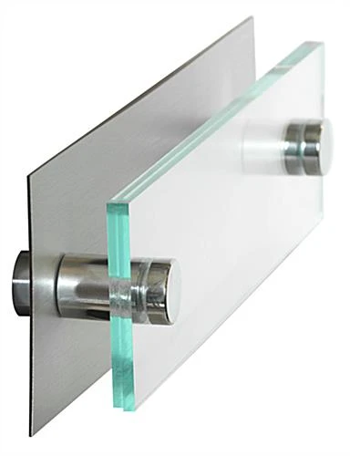 Get the high-quality look of custom-made name plates without the price tag with this standoff office sign with silver backer. Instead of traditional holders that imprint or etch the graphics on to the front panel, this item allows you to create, print, and swap out your artwork with ease. With its brushed aluminum finish and double acrylic panes, this dimensional office sign is a stylish option for a wayfinding system. Change out the graphics of the name plates without removing the holder from the wall by unscrewing two through-grip caps. Coupled with the aluminum finish of the rear panel, these chrome caps are classy yet subtle and won’t distract from your office sign. This kit includes hardware for wall mounting, three clear film sheets, and three frosted film sheets.